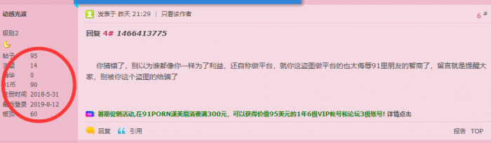 哈哈,给楼主免费科普一下,你说三楼那个朋友账号旁显示95数字这个问题,那代表的是发帖或留言总和的数字,不是显示多少就代表发了多少帖哈哈哈哈哈哈,有很多没发帖只留言的朋友那个数字也在变,楼主还是搞自己的平台去吧,91不太适合你。