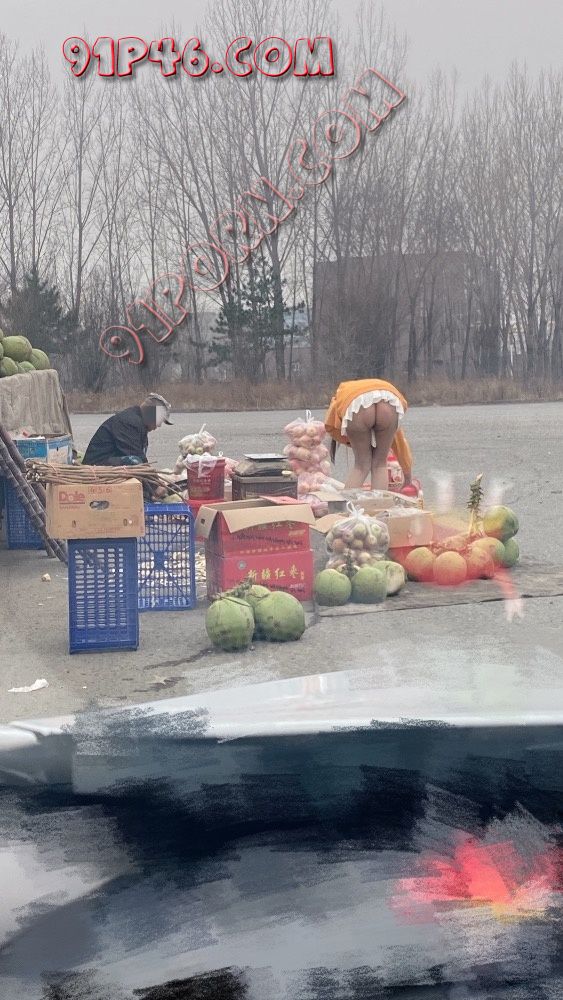 拍了一会比较晚了我们就回来了,到路上看到有卖水果的,之前看到有人发在地摊前露出挺刺激,就让骚妻下去买了点水果顺便露一下给过路的司机们看,